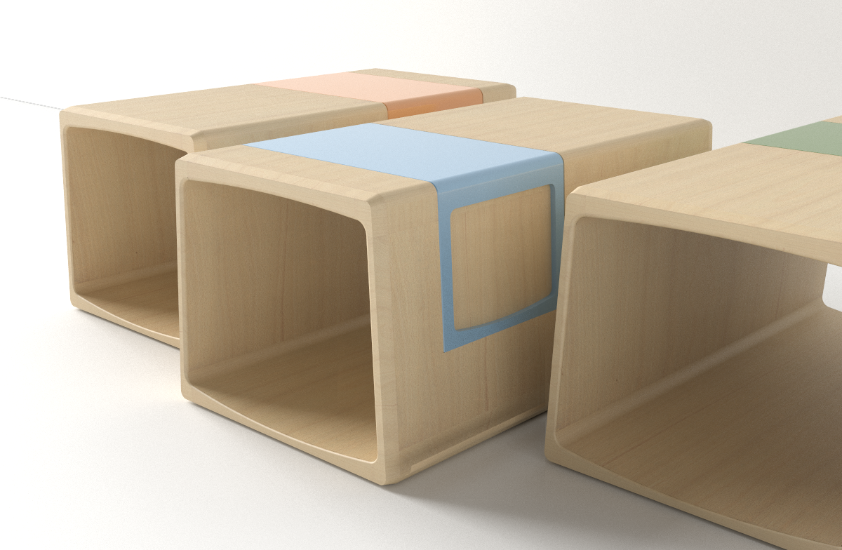 A multi-use storage bench that allows a parent and child to share a moment together. With two distinct parts that create a whole, Cubby represents a perfect fit, creating something complete.